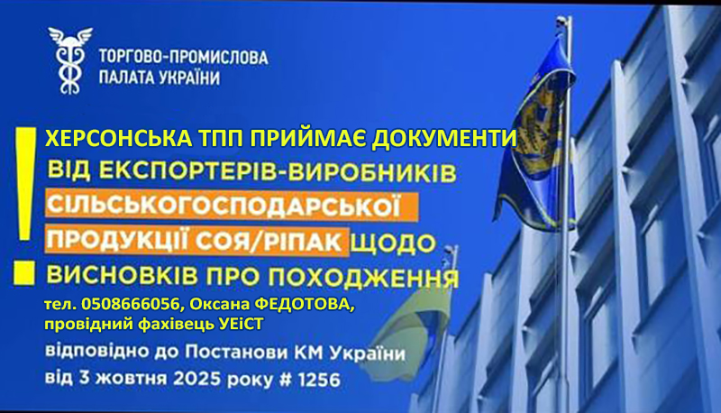 Херсонская торгово-промышленная палата сообщает о готовности к выдаче электронных сертификатов происхождения товара